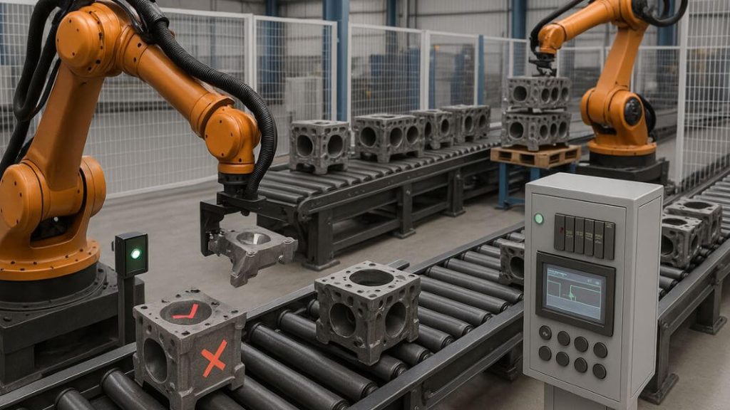 5. Integración física y validación – Se planifica una instalación escalonada para evitar paradas prolongadas. Durante la FAT se prueban las células en taller; en la SAT se verifica el rendimiento en planta con protocolos CE y de seguridad funcional. Un plan de rampa lleva la línea al 100 % de capacidad en pocas semanas.